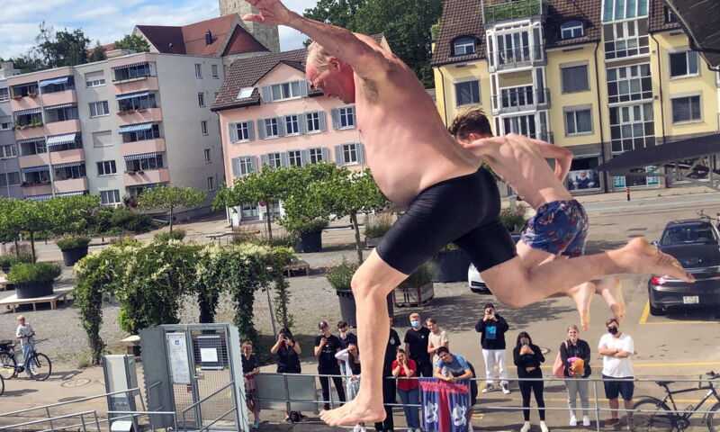 Der Fenstersprung ist seit vielen Jahren ein Sommerritual: für kurze Zeit die Schwerkraft überwinden und glücklich im Hafenbecken landen.